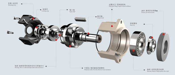 精密配件:減速機核心部件采用歐洲,日本,臺灣等地進口部件,精度高,運行壽命>10000小時。